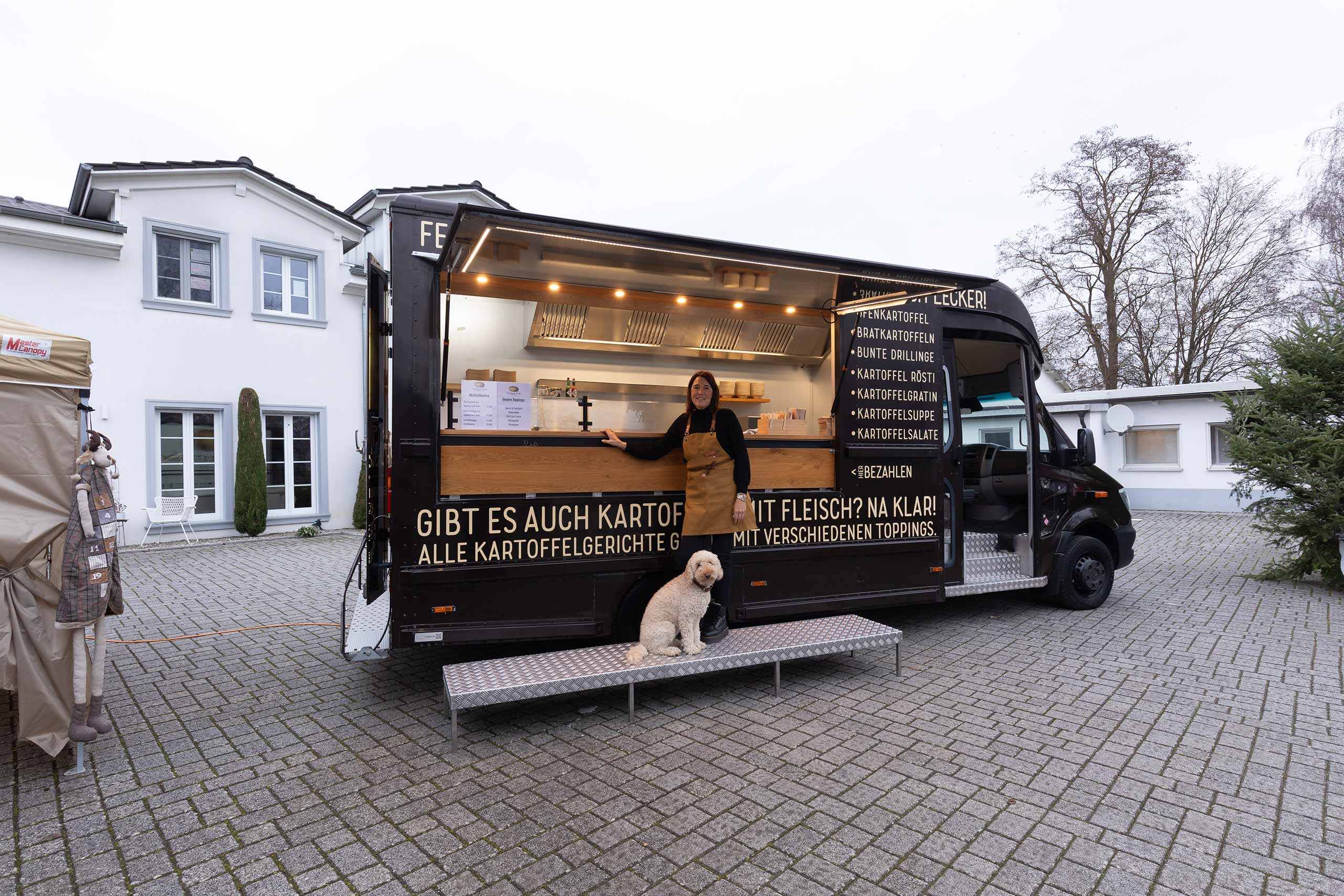 Wir haben einen mobilen Kartoffelstand und einen Kartoffeltruck. Also eine mobile Streetfood-Kartoffel-Küche auf Rädern, vollgepackt mit kreativen Kartoffelgerichten, die wir selbstverständlich von unseren eigenen Kartoffeln immer frisch kochen.